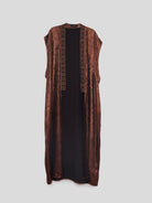 The Auric Bronze is a sculptural sleeveless kimono designed for fluid movement and understated warmth. Its bronze sheen, clean silhouette and artisanal trim create a piece that feels grounded, modern, and effortlessly versatile – perfect for sunlit escapes or slow evening rituals.